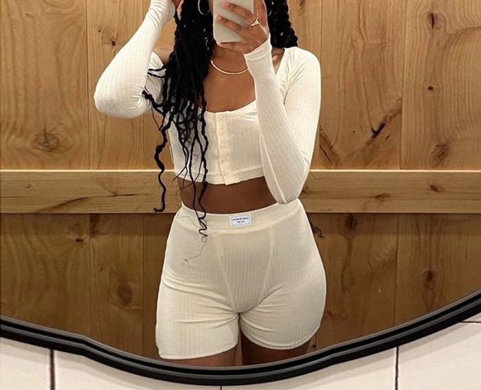 (White)2022 Styles Women Fashion Summer TikTok&Instagram Styles Short Two Piece SuitSKU: #XF92665-2