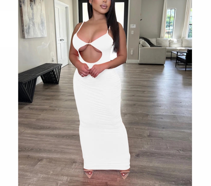 (White)2022 Styles Women Sexy Spring&Winter TikTok&Instagram Styles Cut Out Strap Maxi DressSKU: #CF79005-8