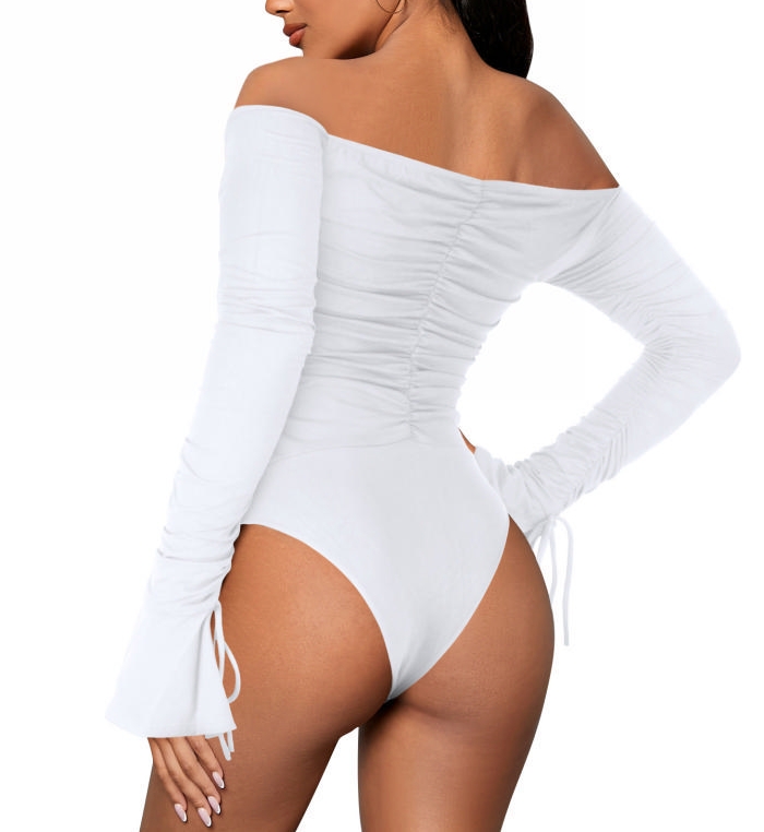 (White)2022 Styles Women Sexy Spring&Winter TikTok&Instagram Styles Flare Long Sleeve BodysuitSKU: #CF79023-4