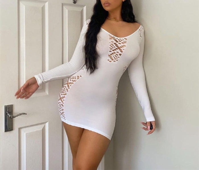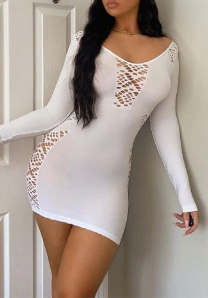 (White)2022 Styles Women Sexy Spring&Winter TikTok&Instagram Styles Lace Long Sleeve Mini DressSKU: #CF77149-2
