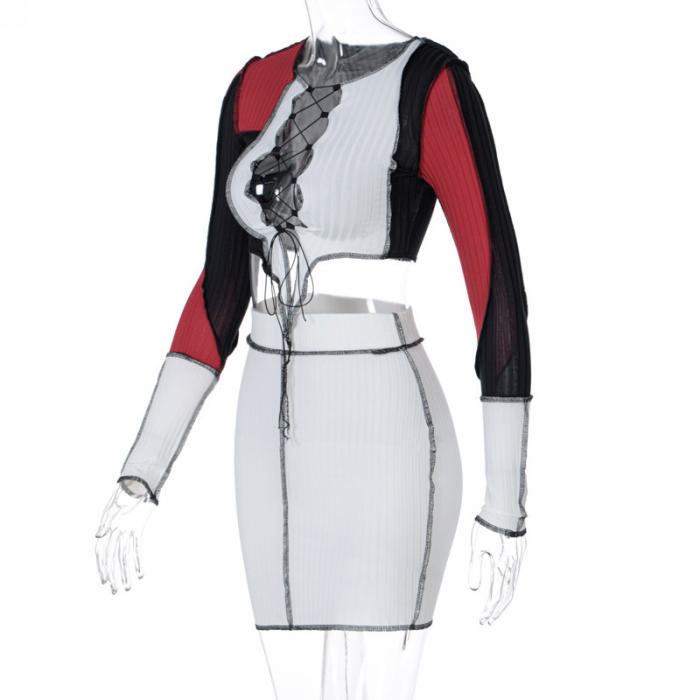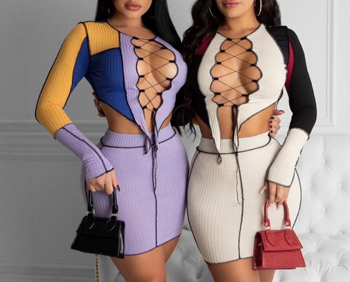 (White)2022 Styles Women Sexy Spring&Winter TikTok&Instagram Styles Lace Up Two Piece DressSKU: #TP013-1