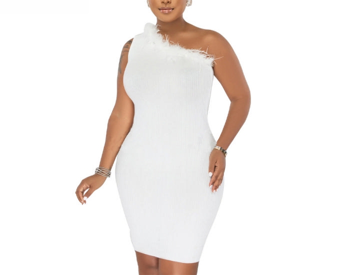 (White)2022 Styles Women Sexy Spring&Winter TikTok&Instagram Styles Single Shoulder Tassel Mini DressSKU: #CF82006-1