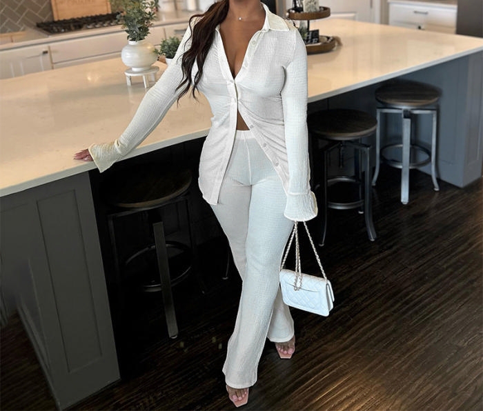 (White)2023 Styles Women Sexy&Fashion Autumn/Winter TikTok&Instagram Styles Front Button Two Piece SuitSKU: #CF47729-2