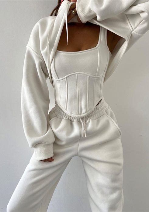 (White)2023 Styles Women Sexy&Fashion Autumn/Winter TikTok&Instagram Styles Hoodie Three Piece SuitSKU: #CF77645-2
