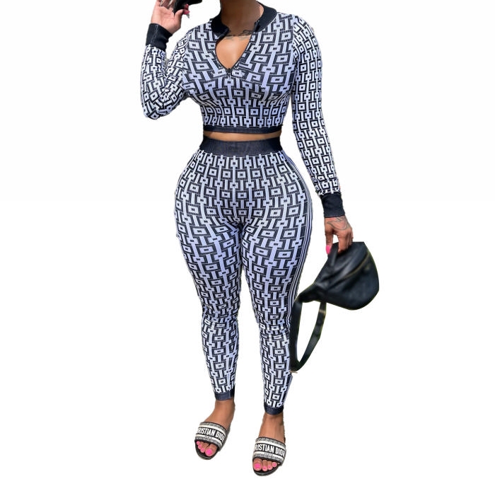 (White)2023 Styles Women Sexy&Fashion Autumn/Winter TikTok&Instagram Styles Print Two Piece SuitSKU: #TP118-1