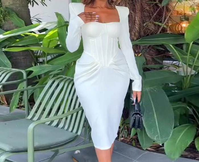 (White)2023 Styles Women Sexy&Fashion Autumn/Winter TikTok&Instagram Styles Tube Long Sleeve Midi DressSKU: #XF27420-1
