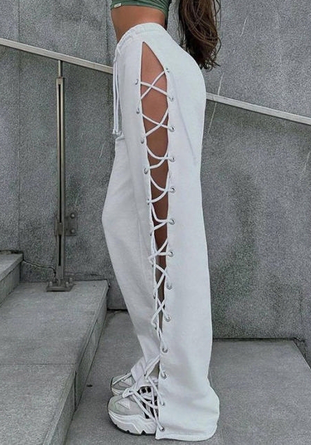 (White)2023 Styles Women Sexy&Fashion Spring&Summer TikTok&Instagram Styles Double Lace Up Long PantsSKU: #XF92773-2