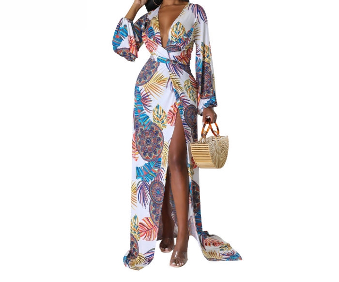 (White)2023 Styles Women Sexy&Fashion Spring&Summer TikTok&Instagram Styles Floral Long Sleeve Maxi DressSKU: #CF82045-4