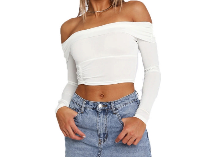 (White)2023 Styles Women Sexy&Fashion Spring&Summer TikTok&Instagram Styles Off Shoulder Long Sleeve TopsSKU: #CF59595-2