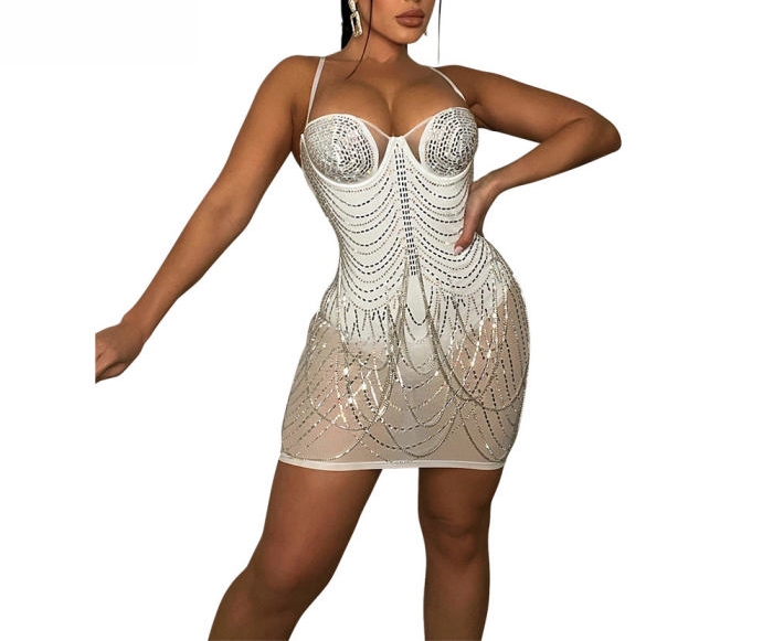 (White)2023 Styles Women Sexy&Fashion Spring&Summer TikTok&Instagram Styles Sequins Club DressSKU: #CF27213-2