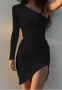 (White)2023 Styles Women Sexy&Fashion Spring&Summer TikTok&Instagram Styles Single Shoulder Long Sleeve Mini DressSKU: #OU279-2
