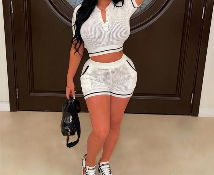 (White)2023 Styles Women Sexy&Fashion Spring&Summer TikTok&Instagram Styles Sweater Short Two Piece SuitSKU: #CF77277-2