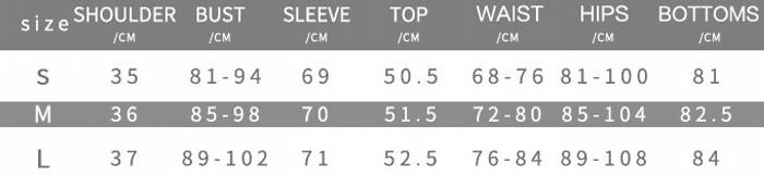 | Size | Bust | Waist | Hips |