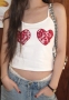 (White)2024 Styles Women Niche Vintage Heart Lace Paneled Crop Halter TopSKU: #CF76170-2