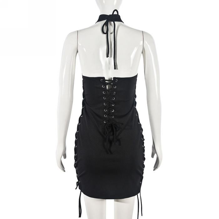 (White)2024 Styles Women Passionate Sexy Open-Work Tie-Neck Sheath DressSKU: #CF59884-2