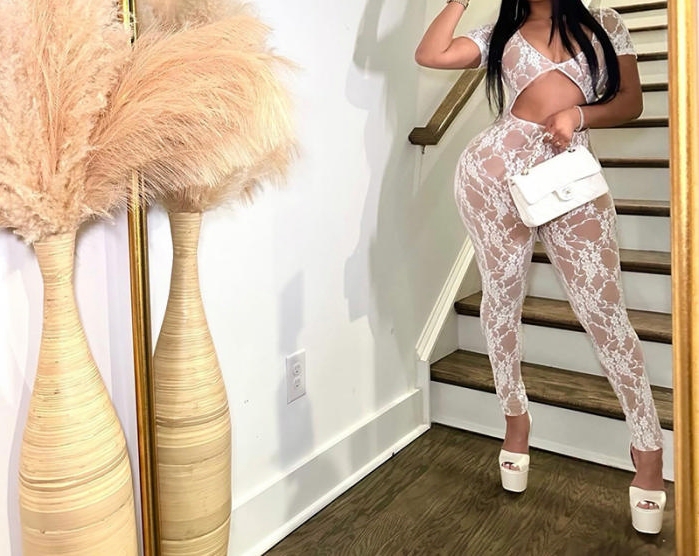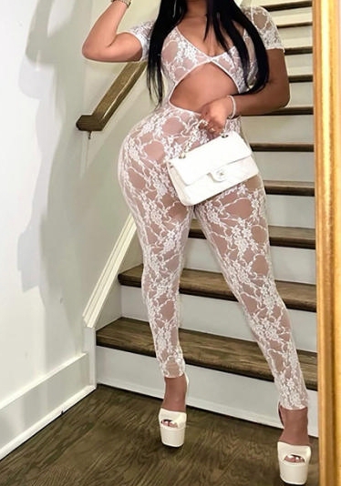 (White)2024 Styles Women Sexy&Fashion Sprint/Summer TikTok&Instagram Styles Cut Out Lace JumpsuitSKU: #CF47850-2