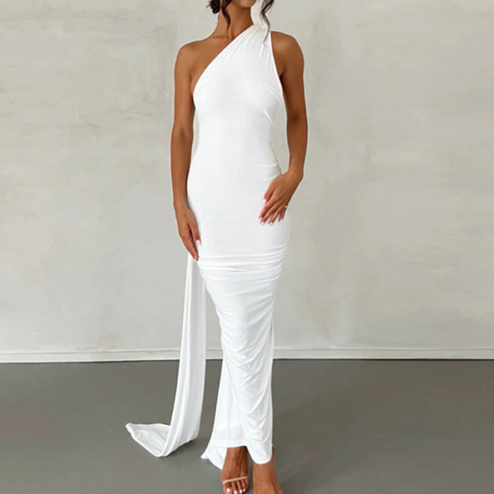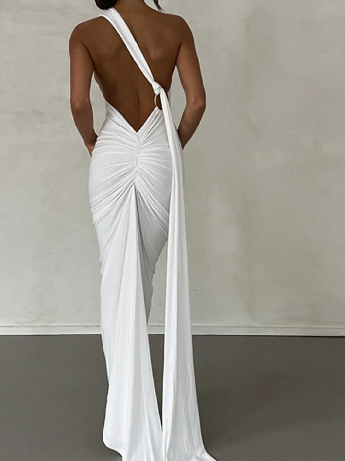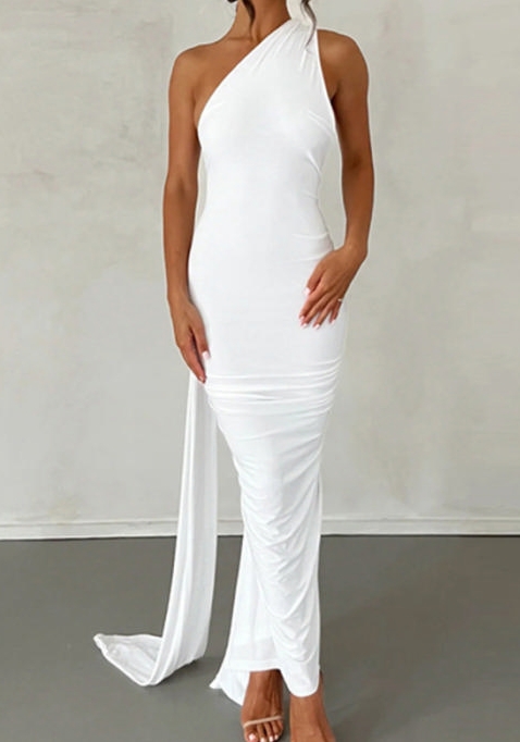 (White)2024 Styles Women Sexy&Fashion Sprint/Summer TikTok&Instagram Styles Single Shoulder Backless Maxi DressSKU: #OU2899-2