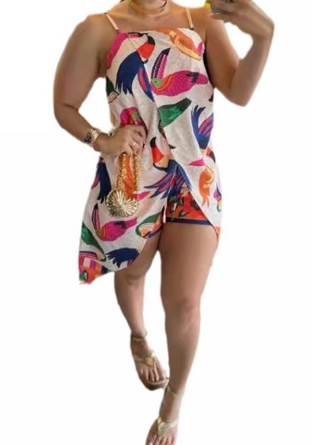 (White)2024 Styles Women Sexy Print Halter Skirt Shorts Set, Two-Piece OutfitSKU: #XF27492-2