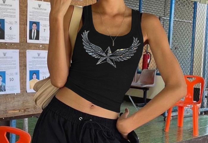 (White)2024 Styles Women Summer Fashion Bejeweled Fitted Crop Top with Sleeveless VestSKU: #CF88254-2