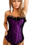 White Lace Up Vertical Stripes Front Bandage Satin OverBust CORSETSKU: #QX1017-1