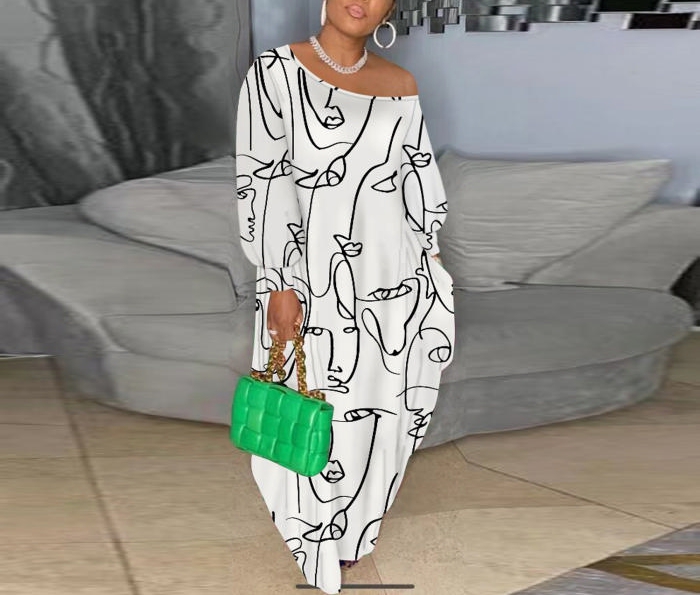 (White)(Plus Size)2022 Styles Women Fashion Spring&Winter TikTok&Instagram Styles Irregular Loose Maxi DressSKU: #XF27252-1