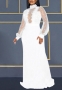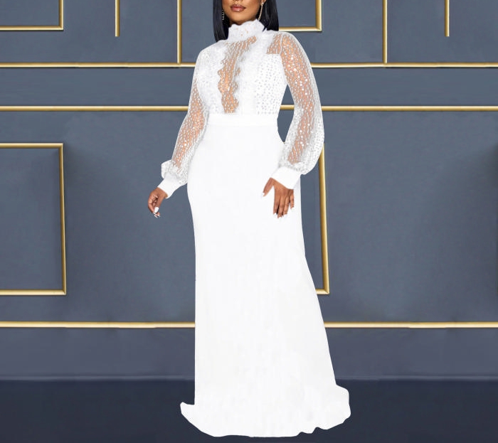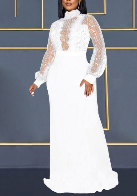 (White)(Plus Size)2022 Styles Women Fashion Spring&Winter TikTok&Instagram Styles Long Sleeve Mesh Sequin Maxi DressSKU: #XF27265-2