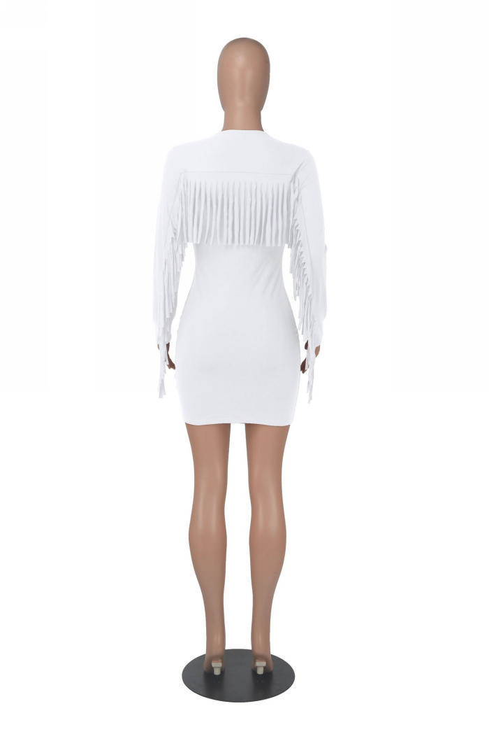(White)(Real Image)2022 Styles Women Fashion Spring INS Styles Solid Color Tassel Long Sleeve Mini DressSKU: #OEM5243-1