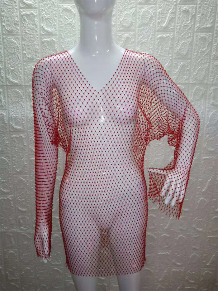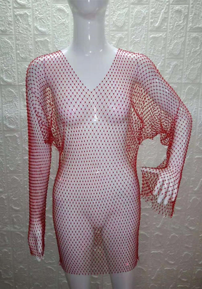 (White V Neck)2023 Styles Women Sexy&Fashion Autumn/Winter TikTok&Instagram Styles Sequins V Neck Mini DressSKU: #CF90003-4