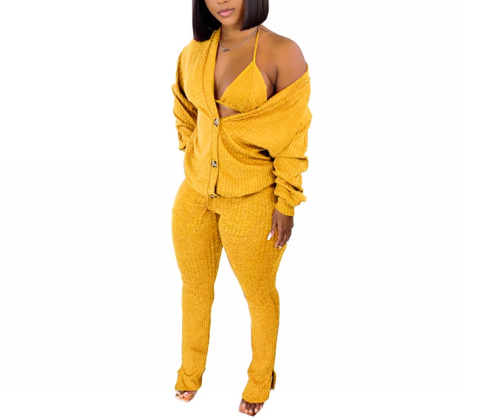 (Yellow)2022 Styles Women Fashion Summer TikTok&Instagram Styles Sweater 3 Piece SuitSKU: #OU0138-2