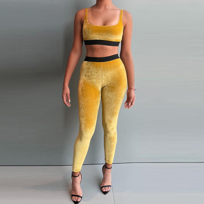 (Yellow)2022 Styles Women Fashion Summer TikTok&Instagram Styles Velvet Two Piece SuitSKU: #CF47303-3