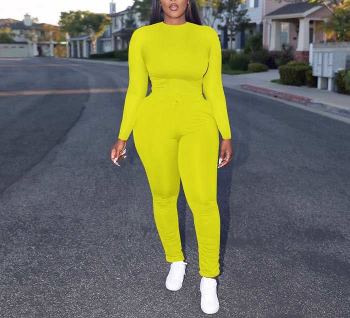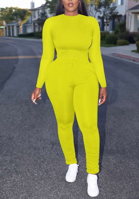 (Yellow)2022 Styles Women Sexy Spring&Winter TikTok&Instagram Styles Solid Color Two Piece SuitSKU: #XF13448-3