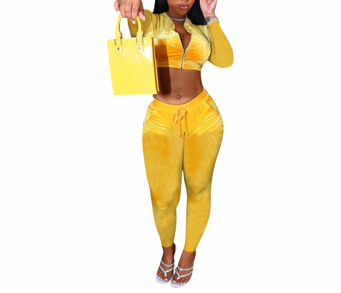 (Yellow)2022 Styles Women Sexy Spring&Winter TikTok&Instagram Styles Velvet Two Piece SuitSKU: #TP015-2