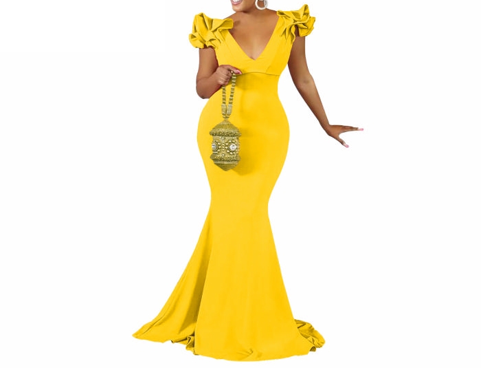 (Yellow)2023 Styles Women Sexy&Fashion Autumn/Winter TikTok&Instagram Styles Deep V Neck Hem Maxi DressSKU: #XF73041-7