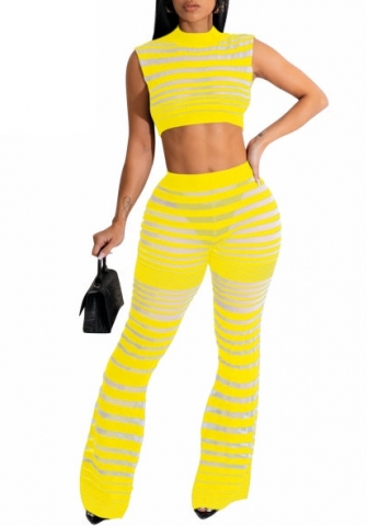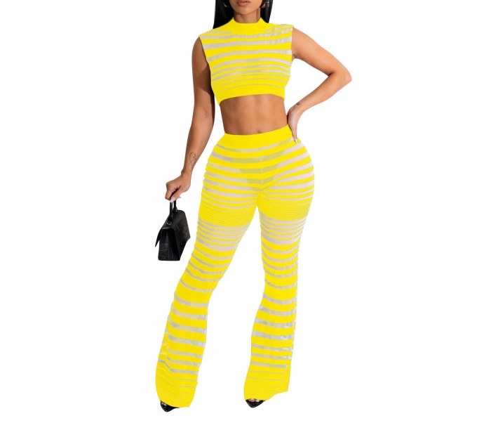 (Yellow)2023 Styles Women Sexy&Fashion Autumn/Winter TikTok&Instagram Styles Mesh Two Piece SuitSKU: #XF73015-5