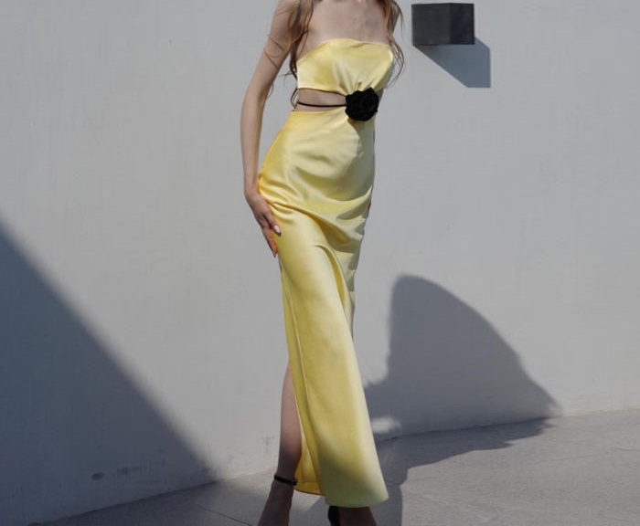 (Yellow)2023 Styles Women Sexy&Fashion Spring&Summer TikTok&Instagram Styles Flower Cut Out Maxi DressSKU: #CF88045-3