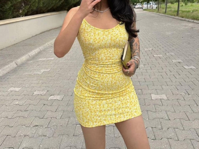 (Yellow)2024 Styles Women Summer Fashion Sexy Backless Bodycon Spaghetti Strap DressSKU: #CF88214-2