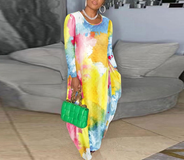 (Yellow)(Plus Size)2022 Styles Women Fashion Spring&Winter TikTok&Instagram Styles Long Sleeve Loose Maxi DressSKU: #XF27255-2