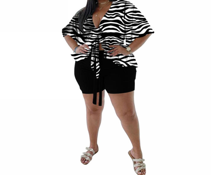 (Zebra)(Plus Size)2023 Styles Women Sexy&Fashion Spring&Summer TikTok&Instagram Styles Print Loose Short Two Piece SuitSKU: #CF85014-3